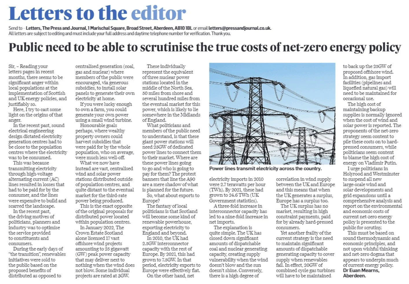 The Press and Journal - Public Need to be Able to Scrutinise the True Cost of Net-Zero Energy Policy - Friday September 22nd 2023